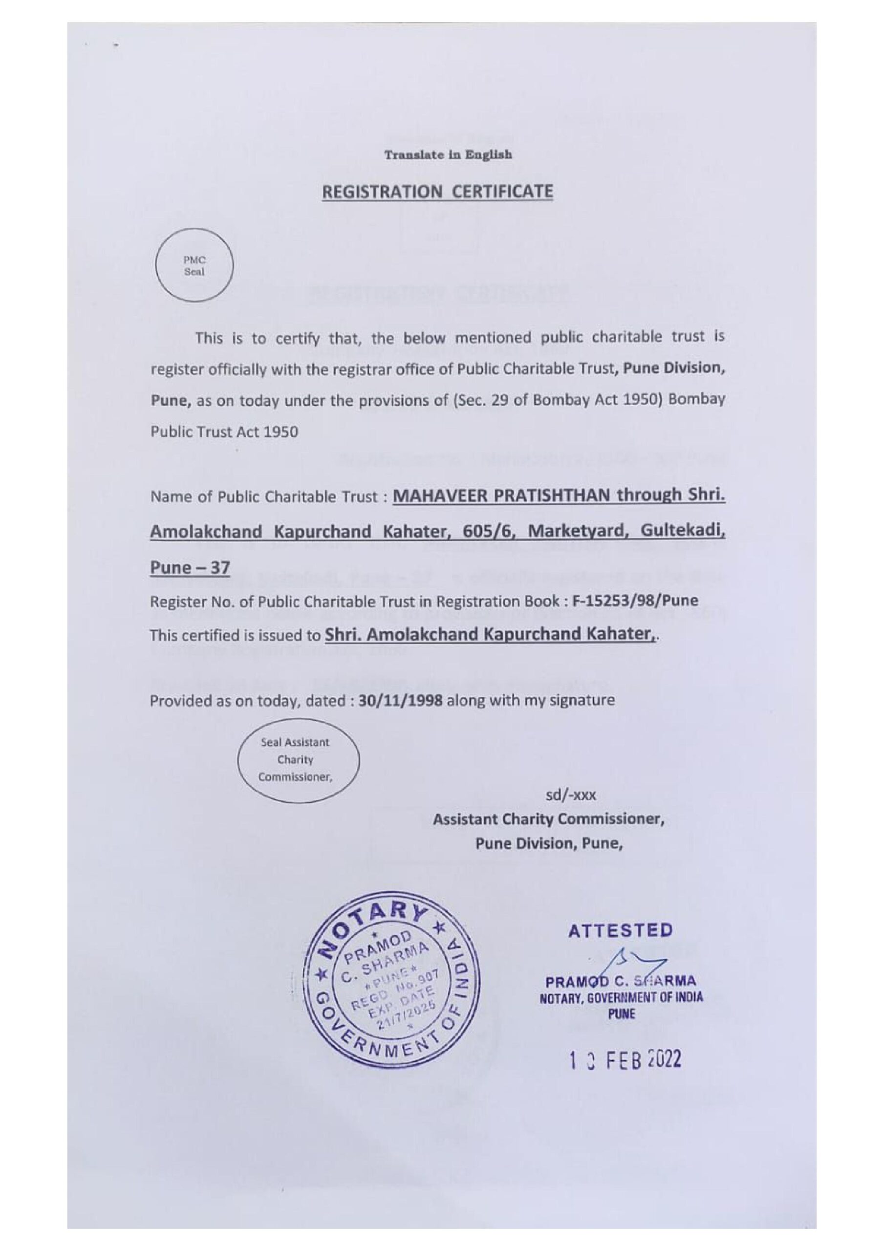 Trust Certificate(In English and Marathi)