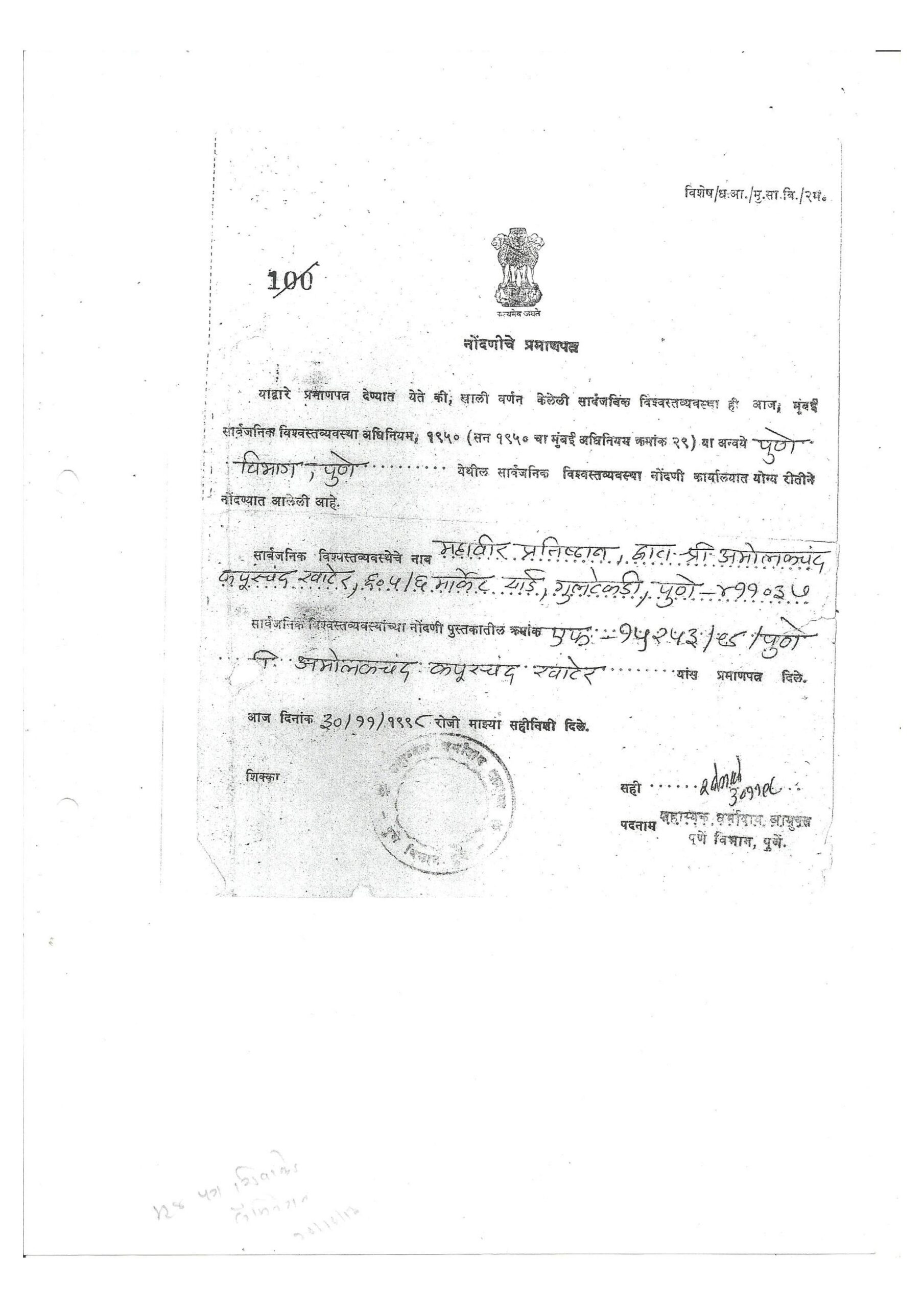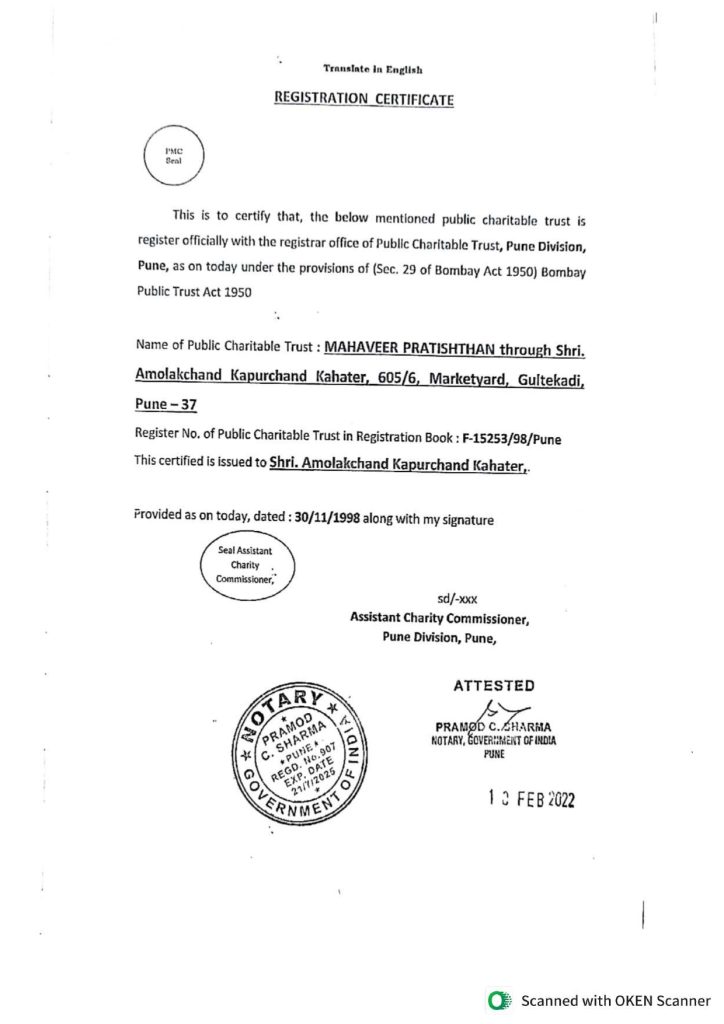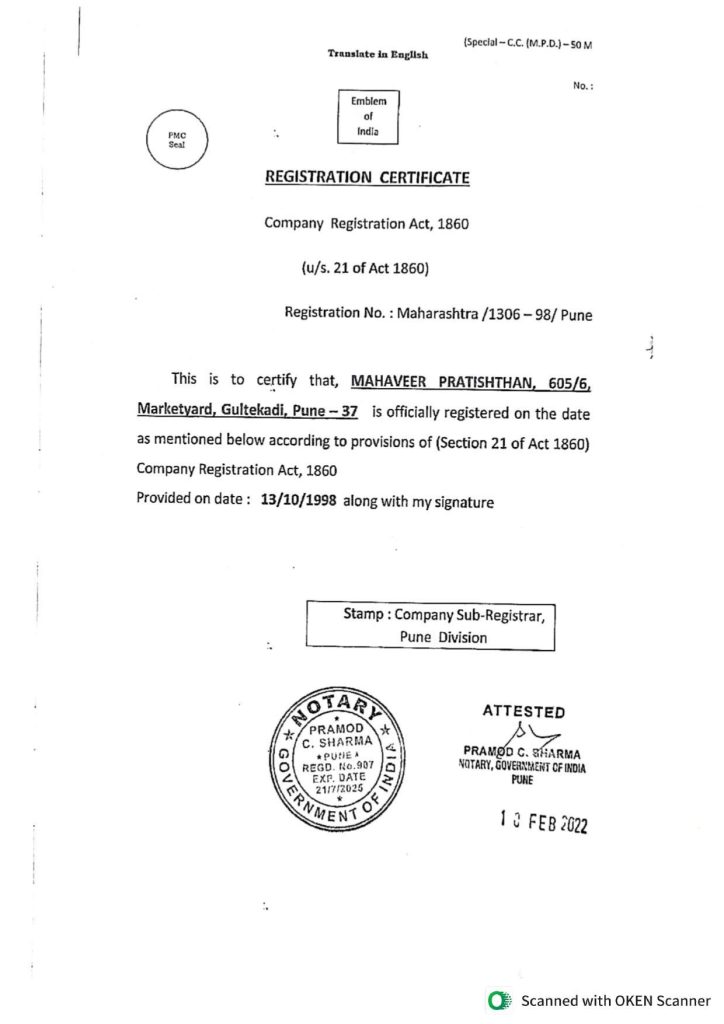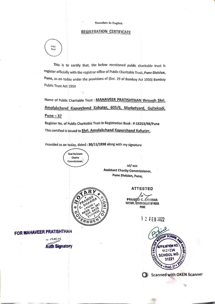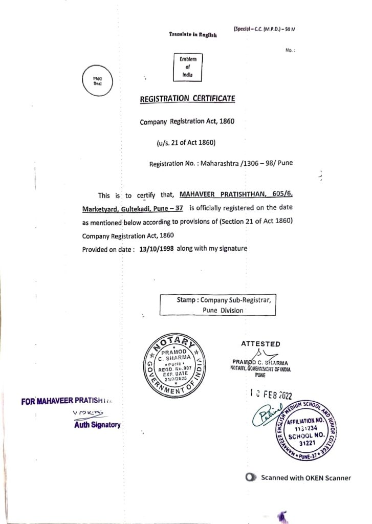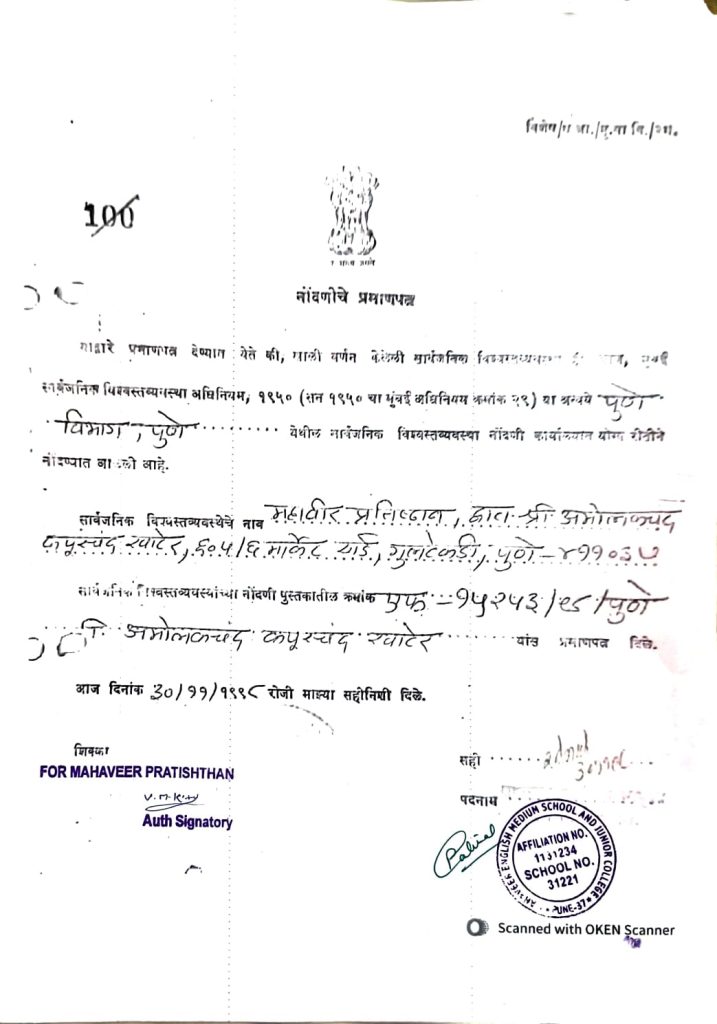 Recognition & Affiliation Certificate (In English and Marathi)